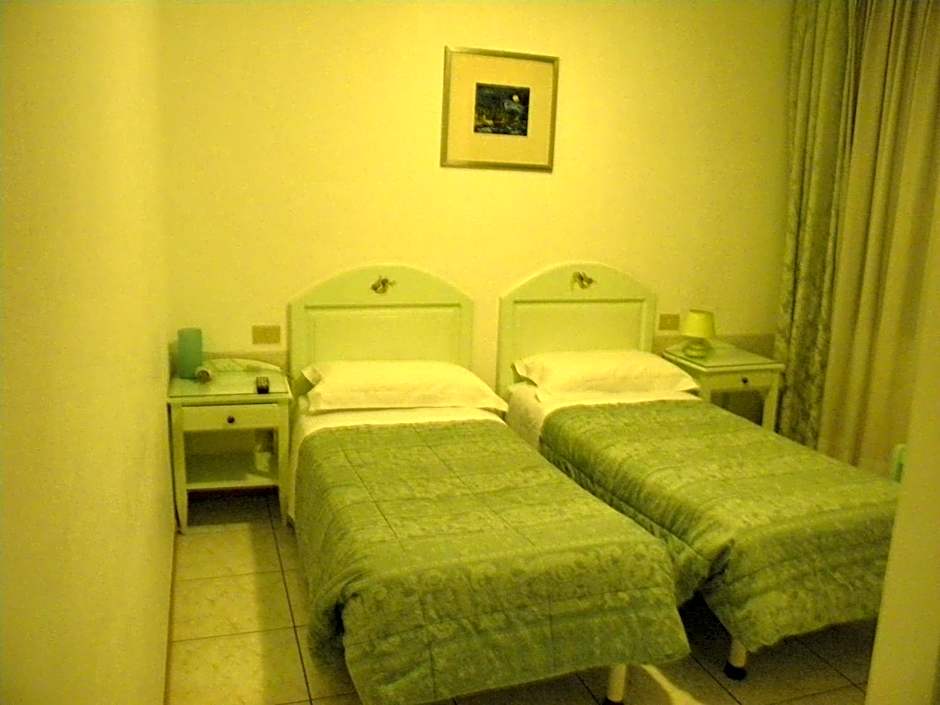 The room is next to the hotel, where check-in and breakfast take place.